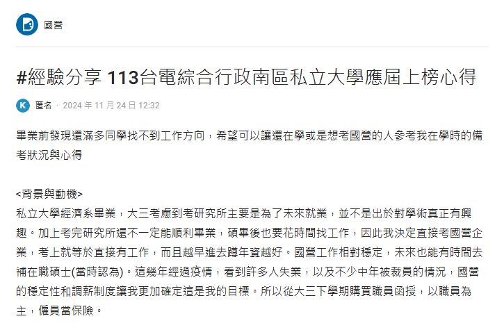 - 【狀元】台灣電力公司(資訊)黃○馨